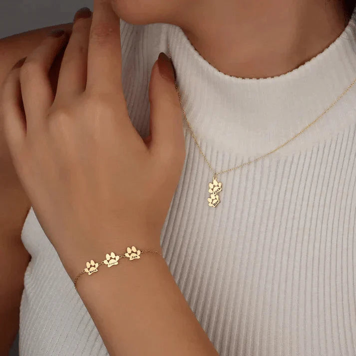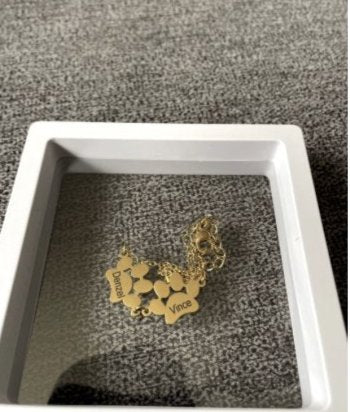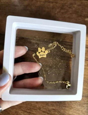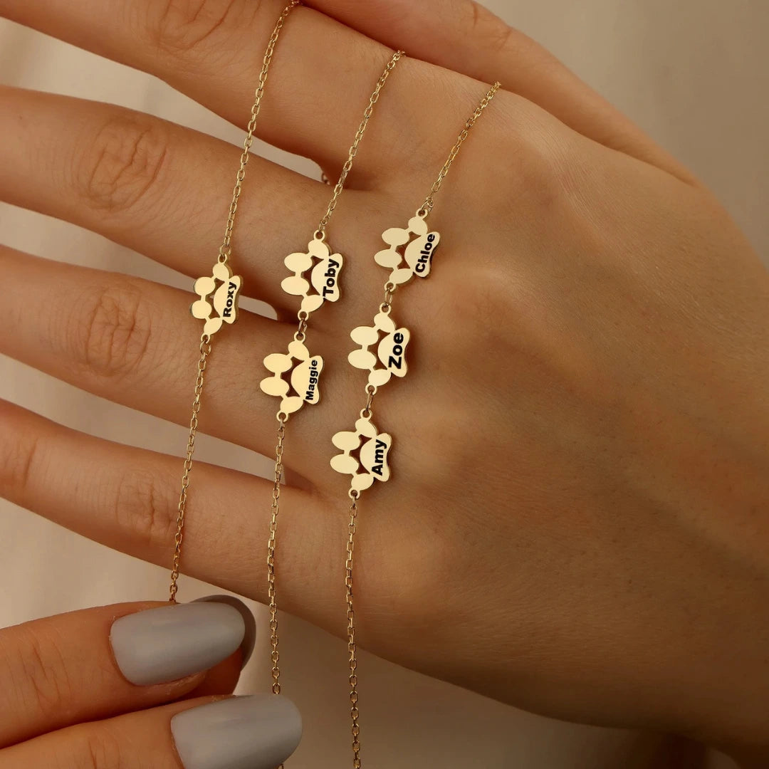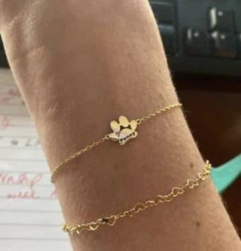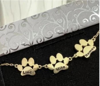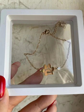 "Ce bracelet est un véritable bijou sentimental! Voir le nom de mes deux chiens gravé sur des petites pattes m'a beaucoup émue. La qualité est incroyable, et je ne le quitte plus. Merci pour ce merveilleux produit"
